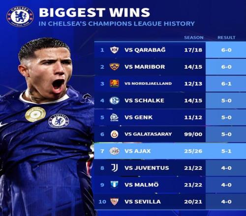 51战胜阿贾克斯,切尔西赢得队史欧冠单场第7大比分胜利